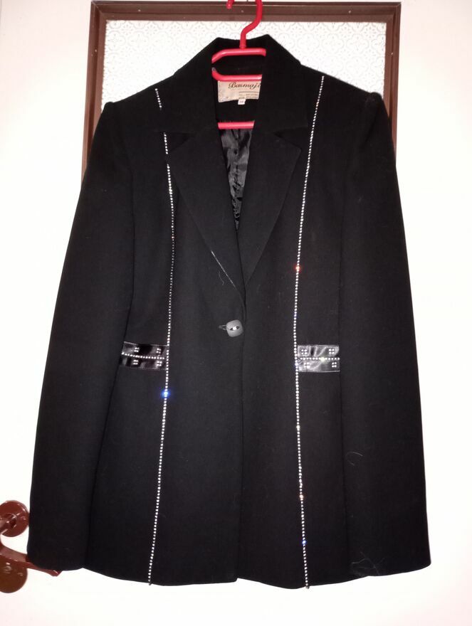 Sprzedaję śliczną czarną marynarkę ozdobioną cyrkoniami. Na metce rozmiar 38.szer. pod pachami - 45 cm