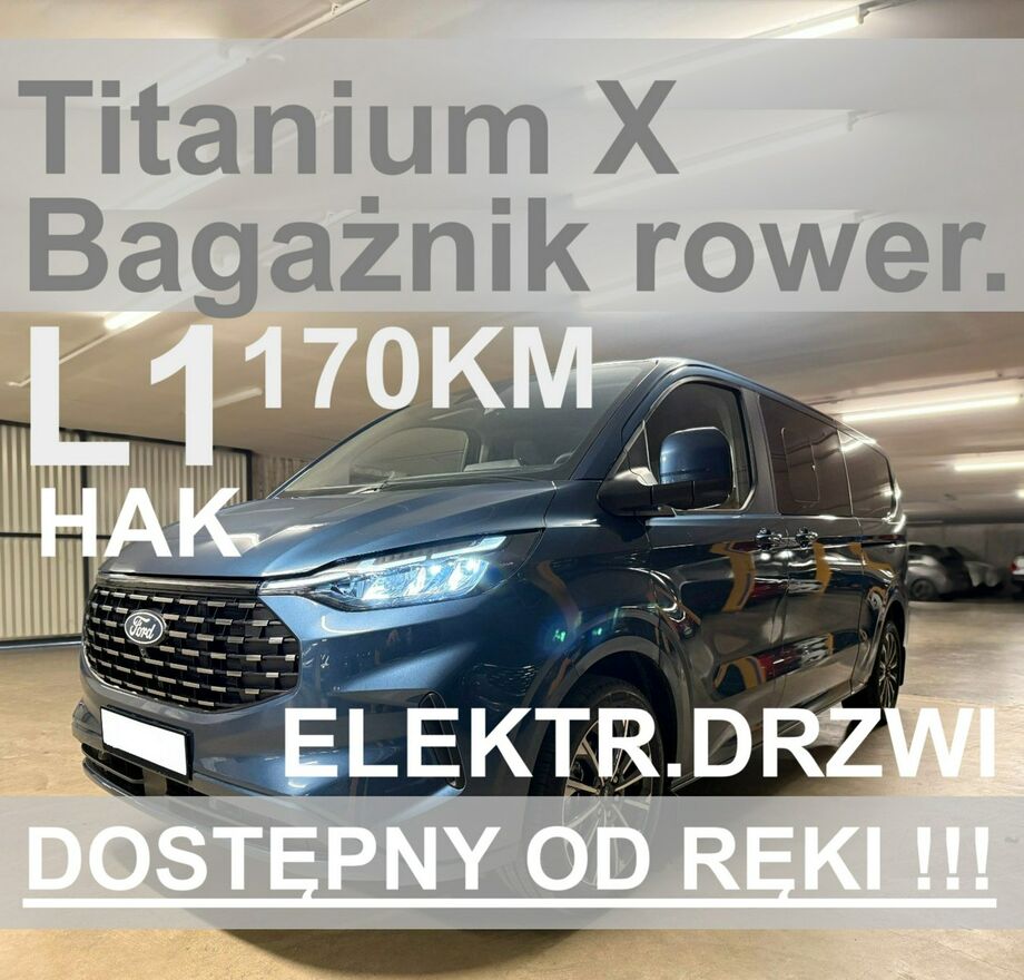 Ford Tourneo Custom L1 Titanium X 170KM ElektryczneDrzwi Hak Bagażnik rowerowyOd ręki 3328