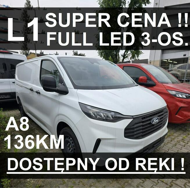 OFEROWANY SAMOCHÓD: • NOWY FORD TRANSIT CUSTOM • WERSJA: TREND 280 L1, 3-OSOBOWY • SILNIK: 2.0 EcoBlue 136KM A8 FWD ...