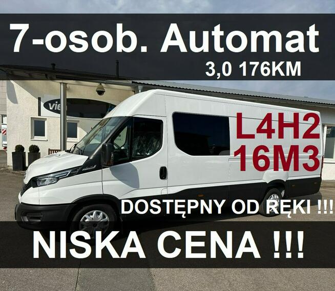 OFEROWANY SAMOCHÓD: • NOWE IVECO DAILY 35S18A8H V • WERSJA: 16M3 L4H2 7-osobowy brygadowy • SILNIK: 3,0 180KM • ...